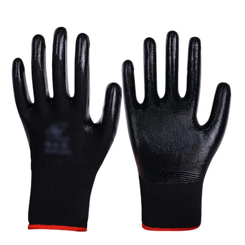 12 Pairs Black Nitrile Rubber Coated Work Gloves Nylon Working Gloves for Men